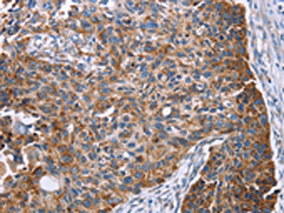• The image on the left is immunohistochemistry of paraffin-embedded Human cervical cancer tissue using CSB-PA560275(PMPCB Antibody) at dilution 1/25, on the right is treated with fusion protein. (Original magnification: ×200)