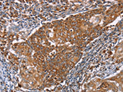 • The image on the left is immunohistochemistry of paraffin-embedded Human cervical cancer tissue using CSB-PA280859(PMPCB Antibody) at dilution 1/50, on the right is treated with fusion protein. (Original magnification: ×200)