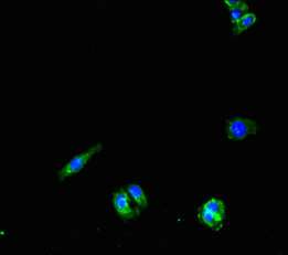 • Immunofluorescent analysis of MCF-7 cells using CSB-PA843295LA01HU at dilution of 1:100 and Alexa Fluor 488-congugated AffiniPure Goat Anti-Rabbit IgG(H+L)