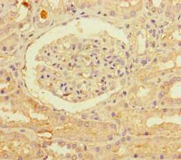 • Immunohistochemistry of paraffin-embedded human kidney tissue using CSB-PA843295LA01HU at dilution of 1:100