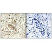 • Immunohistochemistry analysis of paraffin-embedded human breast carcinoma tissue using POLE1 antibody.