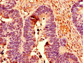 Immunohistochemistry of paraffin-embedded human pancreatic cancer using CSB-PA018329LA01HU at dilution of 1:100