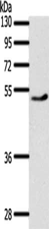 • Gel: 10%SDS-PAGE, Lysate: 40 μg, Lane: Mouse heart tissue, Primary antibody: CSB-PA565092(PPARD Antibody) at dilution 1/500, Secondary antibody: Goat anti rabbit IgG at 1/8000 dilution, Exposure time: 30 seconds