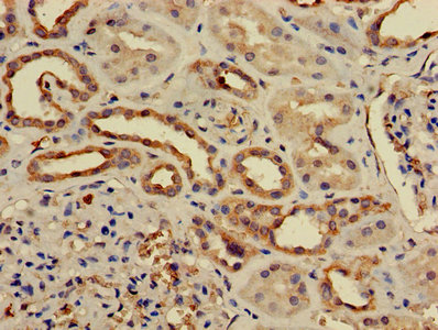 Immunohistochemistry of paraffin-embedded human kidney tissue using CSB-PA00985A0Rb at dilution of 1:50