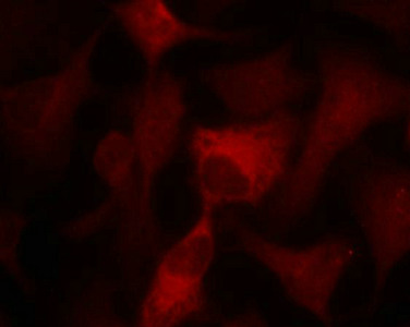 Immunofluorescence staining of methanol-fixed Hela cells using AMPKa1/AMPKa2(Ab-174/172) Antibody.