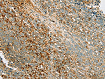 • The image on the left is immunohistochemistry of paraffin-embedded Human ovarian cancer tissue using CSB-PA345903(PRKAA1 Antibody) at dilution 1/70, on the right is treated with synthetic peptide. (Original magnification: ×200)
