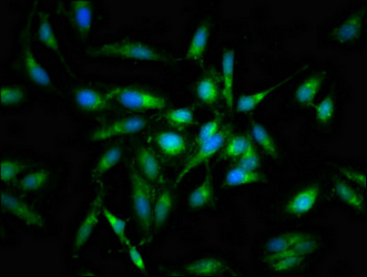• Immunofluorescent analysis of Hela cells using CSB-PA15849A0Rb at dilution of 1:100 and Alexa Fluor 488-congugated AffiniPure Goat Anti-Rabbit IgG(H+L)