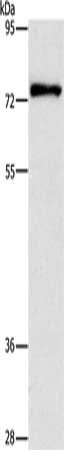 • Gel: 6%SDS-PAGE, Lysate: 40 μg, Lane: Mouse brain tissue, Primary antibody: CSB-PA282230(PRKCD Antibody) at dilution 1/350, Secondary antibody: Goat anti rabbit IgG at 1/8000 dilution, Exposure time: 20 seconds