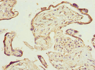 Immunohistochemistry of paraffin-embedded human placenta tissue using CSB-PA018977ESR1HU at dilution of 1:100