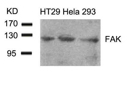 相關(guān)疾病:Aberrant PTK2/FAK1 expression may play a role in cancer cell proliferation, migration and invasion, in tumor formation and metastasis. PTK2/FAK1 overexpression is seen in many types of cancer.