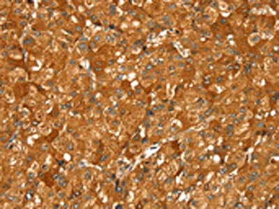 • The image on the left is immunohistochemistry of paraffin-embedded Human liver cancer tissue using CSB-PA176883(PYGM Antibody) at dilution 1/30, on the right is treated with fusion protein. (Original magnification: ×200)