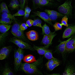 Immunofluorescence staining of methanol-fixed HeLa cells using BCL-XL (phospho-Ser62) antibody.