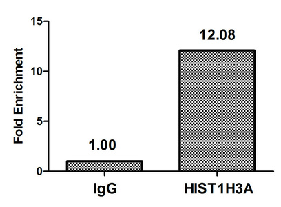 Chromatin Immunoprecipitation Hela (4*106, treated with 100nM calyculin A for 60min) were treated with Micrococcal Nuclease, sonicated, and immunoprecipitated with 5µg anti-HIST1H3A (CSB-PA010418OA28phHU) or a control normal rabbit IgG. The resulting ChIP DNA was quantified using real-time PCR with primers against the β-Globin promoter.