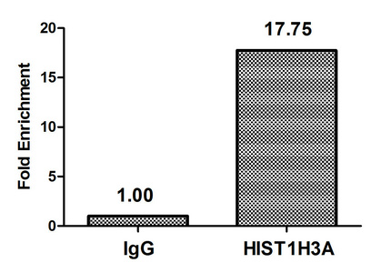• Chromatin Immunoprecipitation Hela (4*106, treated with 100nM calyculin A for 60min) were treated with Micrococcal Nuclease, sonicated, and immunoprecipitated with 5µg anti-HIST1H3A (CSB-PA010418OA03phHU) or a control normal rabbit IgG. The resulting ChIP DNA was quantified using real-time PCR with primers against the β-Globin promoter.
