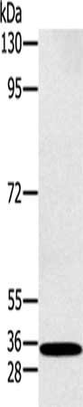 Gel: 8%SDS-PAGE, Lysate: 40 μg, Lane: K562 cells, Primary antibody: CSB-PA660209(RAB27A Antibody) at dilution 1/400, Secondary antibody: Goat anti rabbit IgG at 1/8000 dilution, Exposure time: 30 seconds