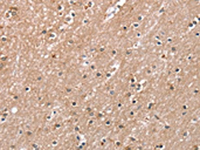 • The image on the left is immunohistochemistry of paraffin-embedded Human brain tissue using CSB-PA249917(RAB8A Antibody) at dilution 1/45, on the right is treated with synthetic peptide. (Original magnification: ×200)