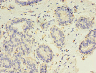 Immunohistochemistry of paraffin-embedded human breast cancer using CSB-PA019253EA01HU at dilution of 1:100