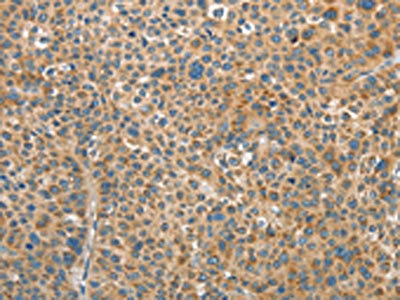 • The image on the left is immunohistochemistry of paraffin-embedded Human liver cancer tissue using CSB-PA827156(RAP1A Antibody) at dilution 1/35, on the right is treated with fusion protein. (Original magnification: ×200)