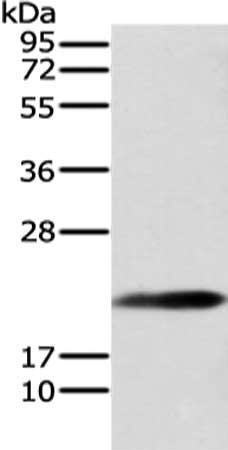 • Gel: 12%SDS-PAGE, Lysate: 40 μg, Lane: Mouse brain tissue, Primary antibody: CSB-PA827156(RAP1A Antibody) at dilution 1/200 dilution, Secondary antibody: Goat anti rabbit IgG at 1/8000 dilution, Exposure time: 10 seconds