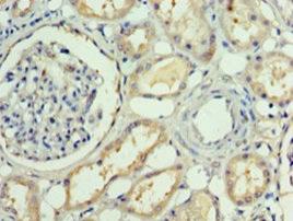 Immunohistochemistry of paraffin-embedded human kidney tissue using CSB-PA07057A0Rb at dilution of 1:100