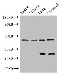 Positive WB detected in: Mouse heart tissue, Mouse spleen tissue, Mouse lung tissue, Mouse stomach tissue
