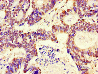 Immunohistochemistry of paraffin-embedded human colon cancer using CSB-PA019603LA01HU at dilution of 1:100