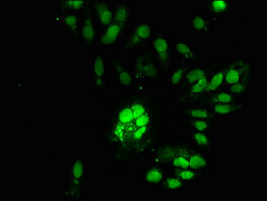 Immunofluorescent analysis of Hela cells using CSB-PA837441LA01HU at dilution of 1:100 and Alexa Fluor 488-congugated AffiniPure Goat Anti-Rabbit IgG(H+L)