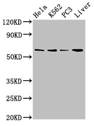 Positive WB detected in: Hela whole cell lysate, K562 whole cell lysate, PC-3 whole cell lysate, Mouse liver tissue