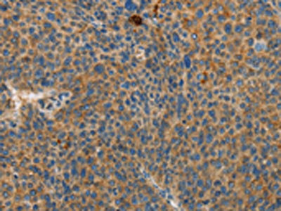The image on the left is immunohistochemistry of paraffin-embedded Human liver cancer tissue using CSB-PA346286(RPS27 Antibody) at dilution 1/25, on the right is treated with fusion protein. (Original magnification: ×200)