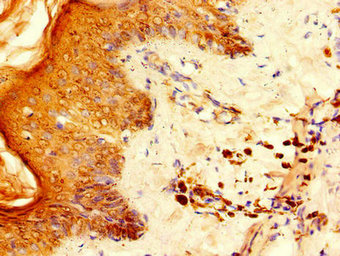 Immunohistochemistry of paraffin-embedded human skin tissue using CSB-PA020463LA01HU at dilution of 1:100