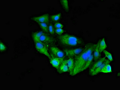 • Immunofluorescent analysis of Hela cells using CSB-PA020595LA01HU at dilution of 1:100 and Alexa Fluor 488-congugated AffiniPure Goat Anti-Rabbit IgG(H+L)