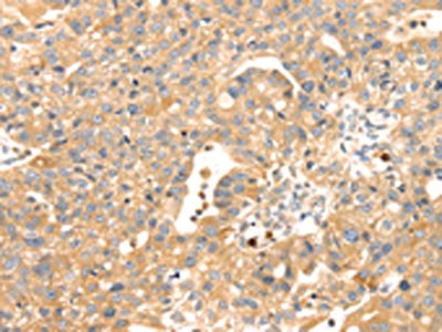 • The image on the left is immunohistochemistry of paraffin-embedded Human breast cancer tissue using CSB-PA062822(S100A12 Antibody) at dilution 1/45, on the right is treated with fusion protein. (Original magnification: ×200)
