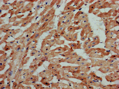 • IHC image of CSB-PA859932LA01HU diluted at 1:800 and staining in paraffin-embedded human heart tissue performed on a Leica BondTM system. After dewaxing and hydration, antigen retrieval was mediated by high pressure in a citrate buffer (pH 6.0). Section was blocked with 10% normal goat serum 30min at RT. Then primary antibody (1% BSA) was incubated at 4°C overnight. The primary is detected by a biotinylated secondary antibody and visualized using an HRP conjugated SP system.