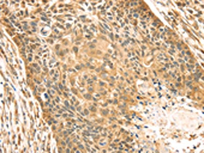 The image on the left is immunohistochemistry of paraffin-embedded Human esophagus cancer tissue using CSB-PA559884(SAMD3 Antibody) at dilution 1/30, on the right is treated with fusion protein. (Original magnification: ×200)