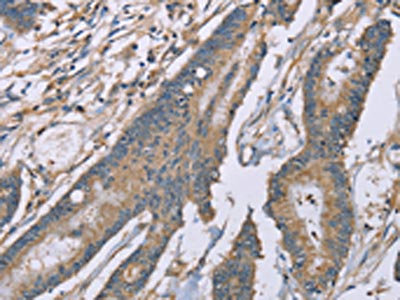 The image on the left is immunohistochemistry of paraffin-embedded Human colorectal cancer tissue using CSB-PA382337(SASH1 Antibody) at dilution 1/20, on the right is treated with synthetic peptide. (Original magnification: ×200)
