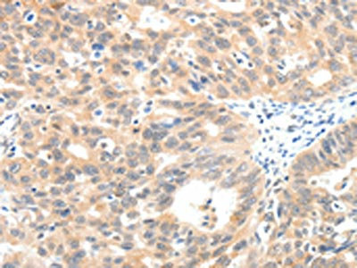 • The image on the left is immunohistochemistry of paraffin-embedded Human ovarian cancer tissue using CSB-PA902560(SCN2A Antibody) at dilution 1/40, on the right is treated with synthetic peptide. (Original magnification: ×200)