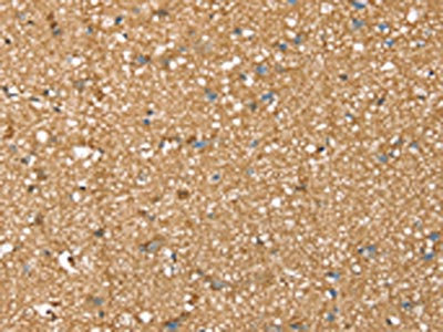 • The image on the left is immunohistochemistry of paraffin-embedded Human brain tissue using CSB-PA296842(SDC3 Antibody) at dilution 1/45, on the right is treated with synthetic peptide. (Original magnification: ×200)