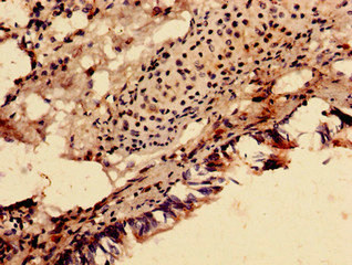 Immunocytochemistry analysis of human lung tissue using CSB-PA01985A0Rb at dilution of 1:100