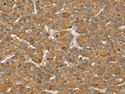 The image on the left is immunohistochemistry of paraffin-embedded Human liver cancer tissue using CSB-PA128984(SENP3 Antibody) at dilution 1/35, on the right is treated with synthetic peptide. (Original magnification: ×200)