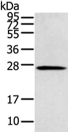 Gel: 12%SDS-PAGE, Lysate: 60 μg, Lane: 293T cell, Primary antibody: CSB-PA868969(SENP8 Antibody) at dilution 1/400 dilution, Secondary antibody: Goat anti rabbit IgG at 1/8000 dilution, Exposure time: 15 seconds