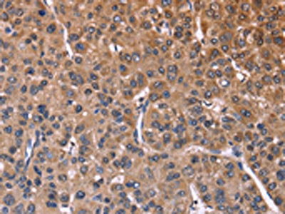 The image on the left is immunohistochemistry of paraffin-embedded Human liver cancer tissue using CSB-PA282707(SEPT7 Antibody) at dilution 1/60, on the right is treated with fusion protein. (Original magnification: ×200)