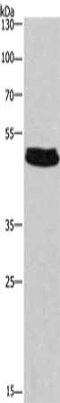Gel: 8%SDS-PAGE, Lysate: 40 μg, Lane: Hela cells, Primary antibody: CSB-PA282707(SEPT7 Antibody) at dilution 1/430, Secondary antibody: Goat anti rabbit IgG at 1/8000 dilution, Exposure time: 30 seconds