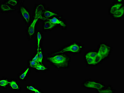 • Immunofluorescent analysis of Hela cells using CSB-PA021189LA01HU at dilution of 1:100 and Alexa Fluor 488-congugated AffiniPure Goat Anti-Rabbit IgG(H+L)