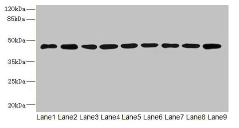 樣品信息:Hela whole cell lysate,brain whole cell lysate,skeletal muscle cell lysate