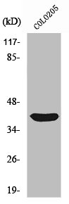 • Western Blot analysis of COLO205 cells using Siah-2 Polyclonal Antibody