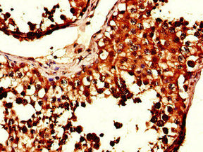 Immunohistochemistry of paraffin-embedded human testis tissue using CSB-PA021321LA01HU at dilution of 1:100