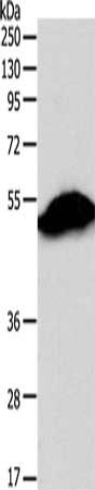 • Gel: 10%SDS-PAGE, Lysate: 40 μg, Lane: Mouse stomach tissue, Primary antibody: CSB-PA959450(SIRT6 Antibody) at dilution 1/300, Secondary antibody: Goat anti rabbit IgG at 1/8000 dilution, Exposure time: 5 seconds