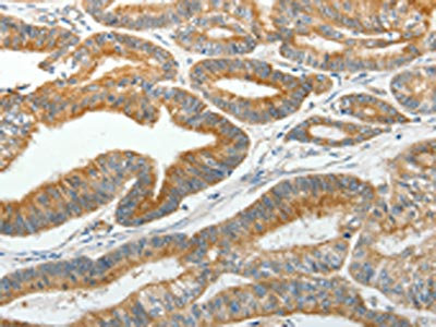• The image on the left is immunohistochemistry of paraffin-embedded Human colon cancer tissue using CSB-PA572733(SLC12A4 Antibody) at dilution 1/30, on the right is treated with fusion protein. (Original magnification: ×200)