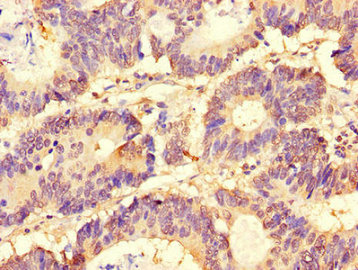 Immunohistochemistry of paraffin-embedded human colon cancer using CSB-PA021610LA01HU at dilution of 1:100