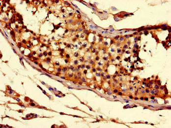 Immunohistochemistry of paraffin-embedded human testis tissue using CSB-PA873618LA01HU at dilution of 1:100